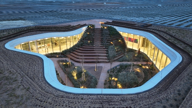 Kentin sahip olduğu bitki örtüsü dikkate alınarak tasarlanan SCADA Merkezi'nin iç bahçesi ise yenilenebilir enerji ve doğanın uyum içinde olduğu bir atmosfer sunuyor.