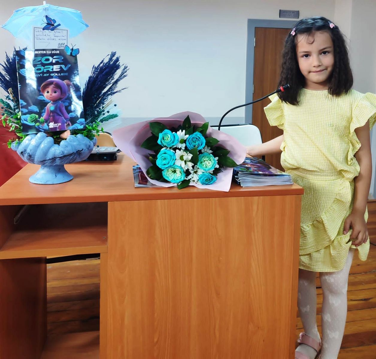 Seydişehir Eti Alüminyum Emine Cengiz İlk Öğretim Okulunda Okuyan 2/D sınıfı Meryem Ela Uğur kendi hikayesinin ve anılarının yer aldığı “Zor görev mavi ay Gülleri " adlı kitabını çıkardı.