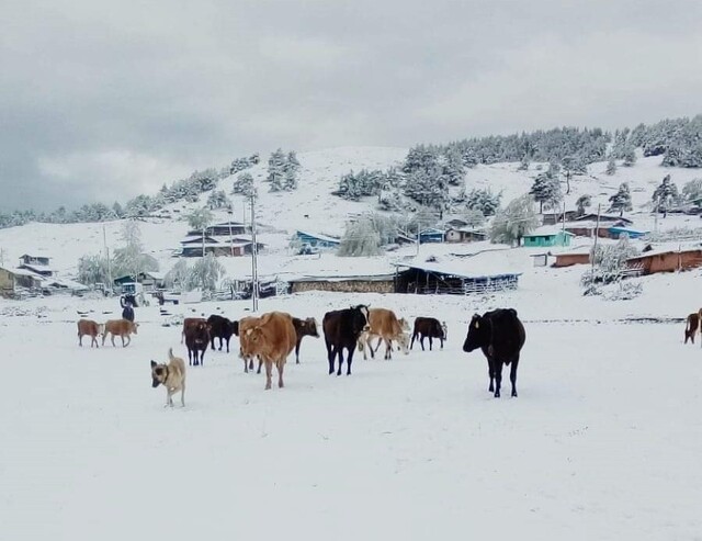 Hayvanlarını meraya çıkartan ve kar yağışına hazırlıksız yakalanan besiciler, sürülerini köylerine erken götürmek zorunda kaldı.