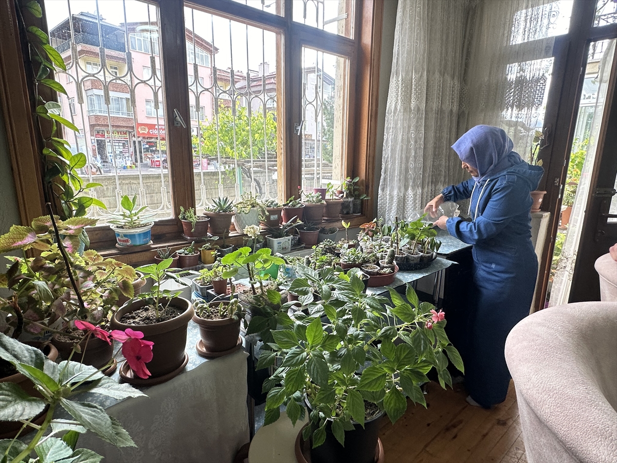 Konya'da yaşayan 49 yaşındaki Gülsün Yılmaz'ın, meme ve mide kanserleriyle mücadelesinde "moral olsun" diye bakmaya başladığı çiçeklerin sayısı çoğalınca evi çiçek bahçesine döndü.