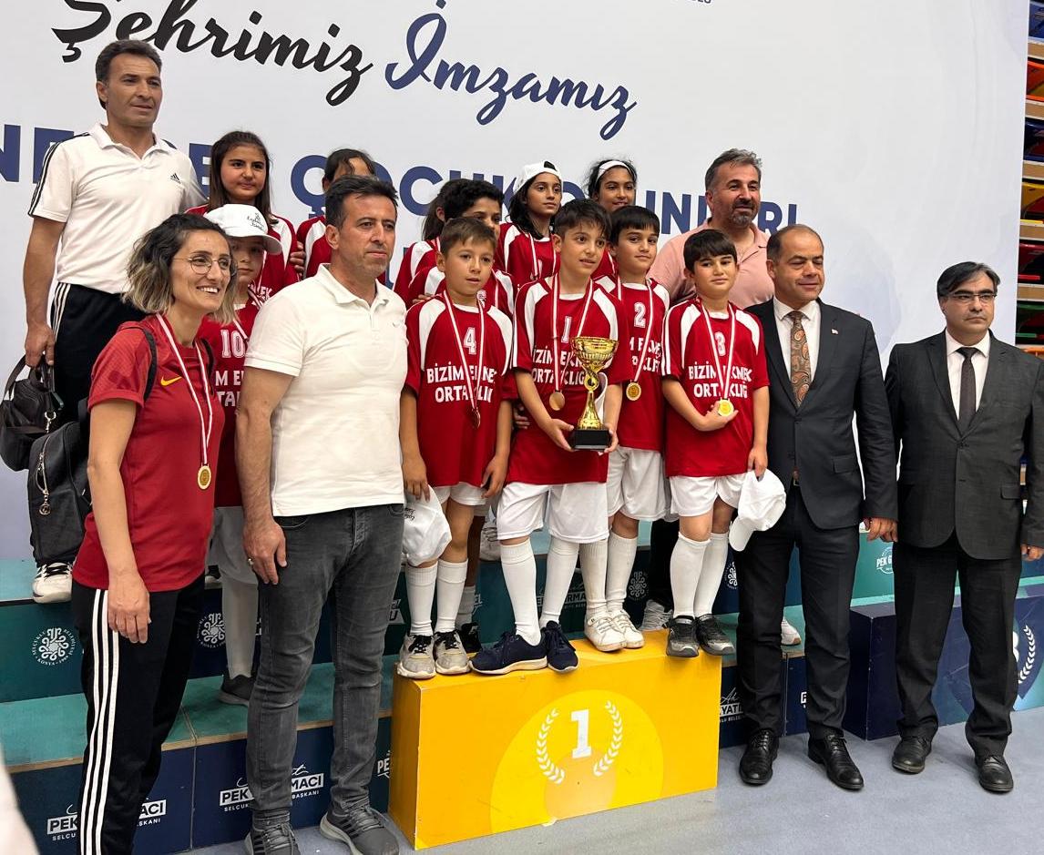 Gazi İlkokulu 4. Sınıf öğrencileri Konya İl Milli Eğitim Müdürlüğü ve Büyükşehir Belediye Başkanlığı işbirliği ile düzenlenen Şehrimiz İmzamız Projesi kapsamında Geleneksel Çocuk Oyunları 4. Sınıflar Kaleli Yakan Top müsabakalarında tüm rakiplerini yenerek İl birincisi olmuştur. Okul Müdürü Mustafa CERAN emeği geçen tüm idareci, öğretmen öğrenci ve velilerimize teşekkür eder tebrik ederim. Başarılarımızın katlanarak sürmesini temenni ederim dedi