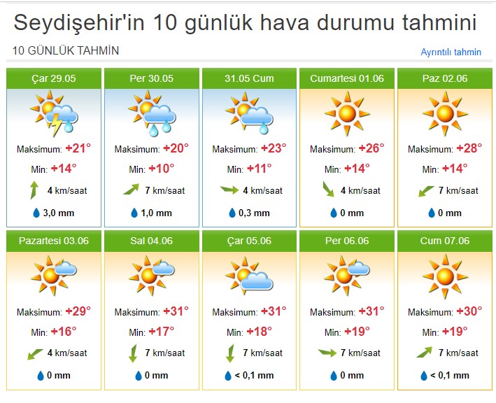 İç Anadolu'da yağışlar hafta sonuna kadar aralıklı sürecek. Çarşamba Konya, Nevşehir, Sivas boyunca yağmur geçişleri var. Eskişehir'de hava biraz bulutlu, yerel yağış olabilecek. Bölgede sıcaklık 23-24 dercelerde.
