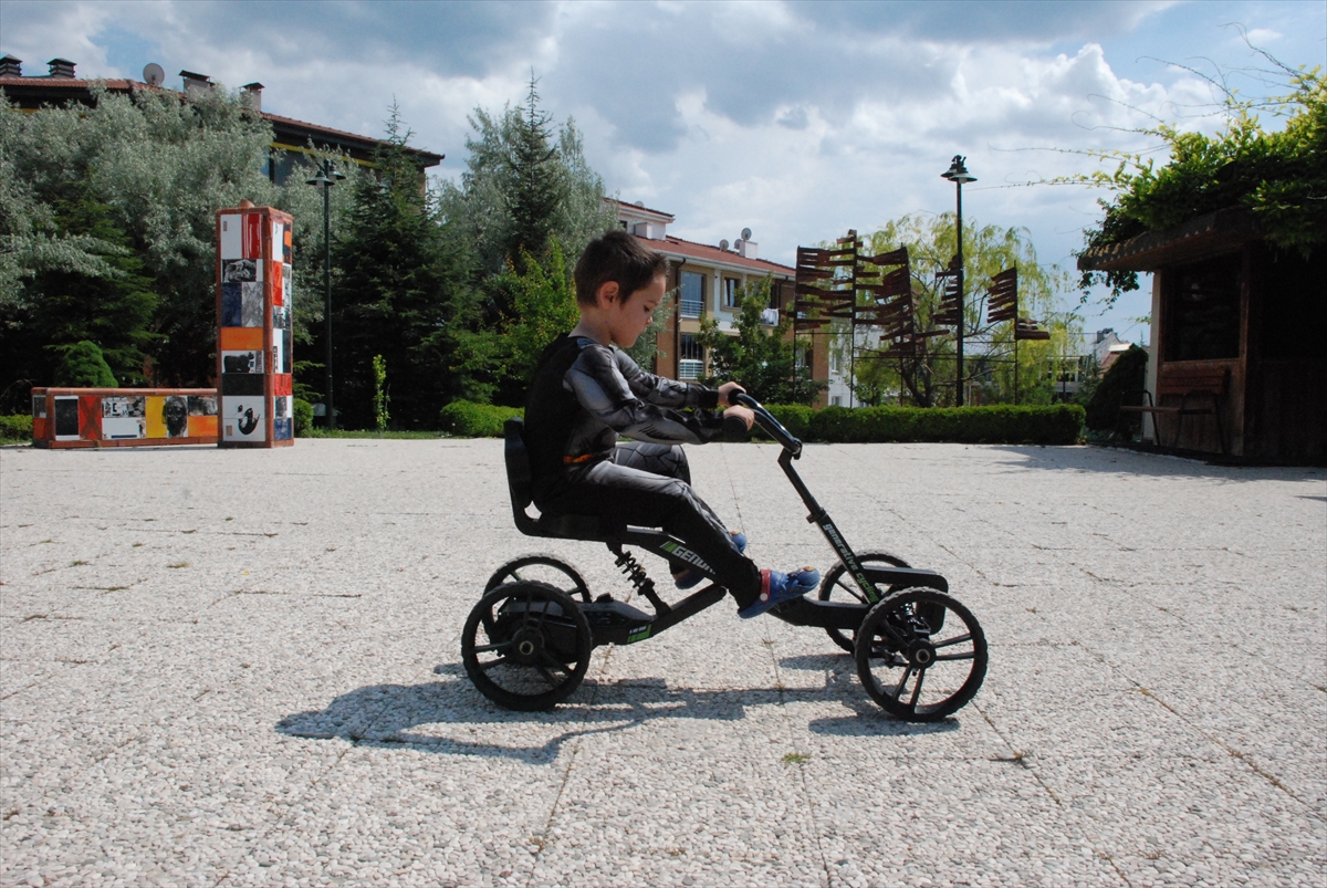 Gökhan Yağcı, AA muhabirine, pedal çevirdikçe stoklanan enerjinin yokuş ile engebeli yollarda motora itiş gücü olarak geri dönüşü esasına dayanan 4 tekerlekli elektrikli bisikletin, uzaktan ebeveyn kontrolünün de bulunduğunu söyledi.