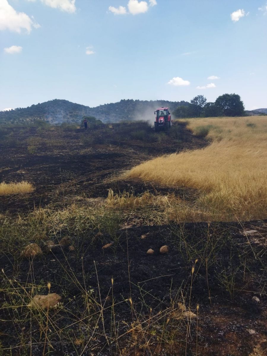 Konya'nın Seydişehir ilçesine bağlı Saraycık Mahallesi'nde bugün öğle saatlerinde meydana gelen yangın, büyük zarara yol açtı. Edinilen bilgilere göre, yangın Süleyman Yüksel'e ait olan arpa ve buğday tarlasında çıktı ve yaklaşık 10 dönümlük ekili alan kül oldu.
