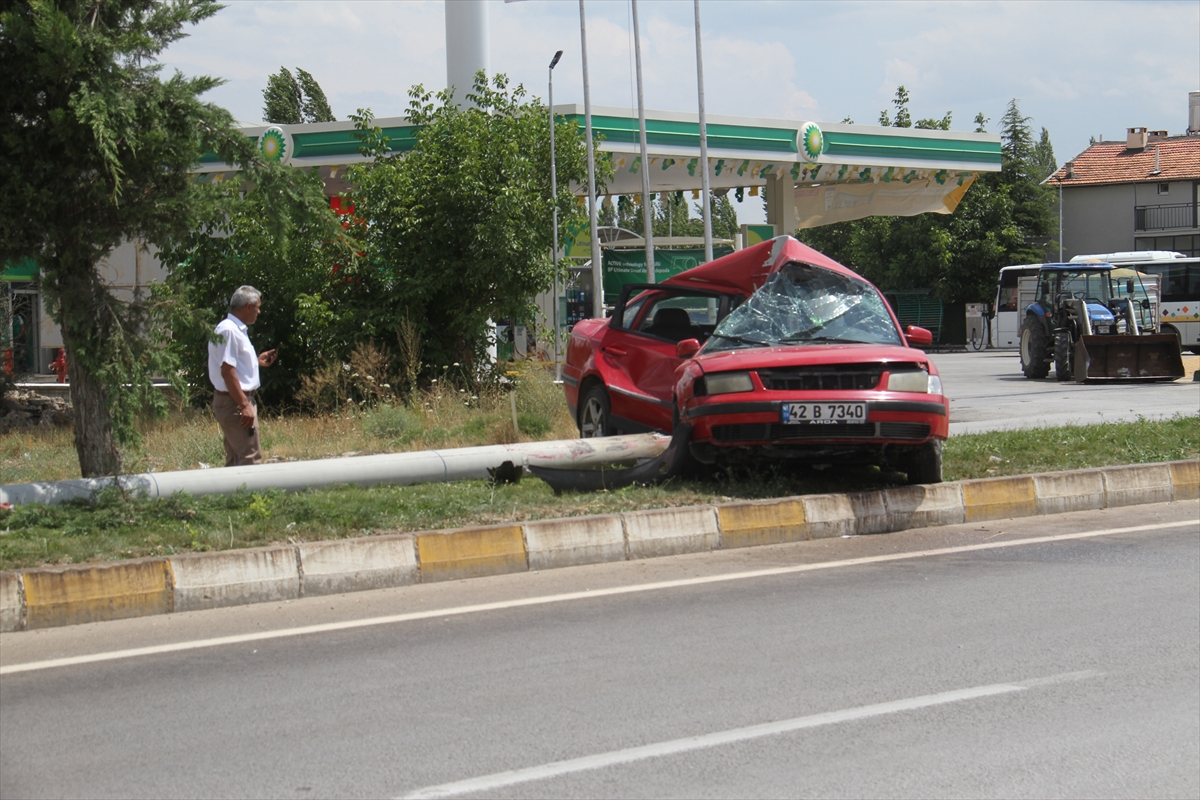Nazmi Ö. yönetimindeki 42 B 7340 plakalı otomobil, kent merkezinden Konya yönüne doğru seyir halinde iken sürücüsünün direksiyon hakimiyetini kaybetmesi sonucu refüje çıkarak aydınlatma direğine çarptı.