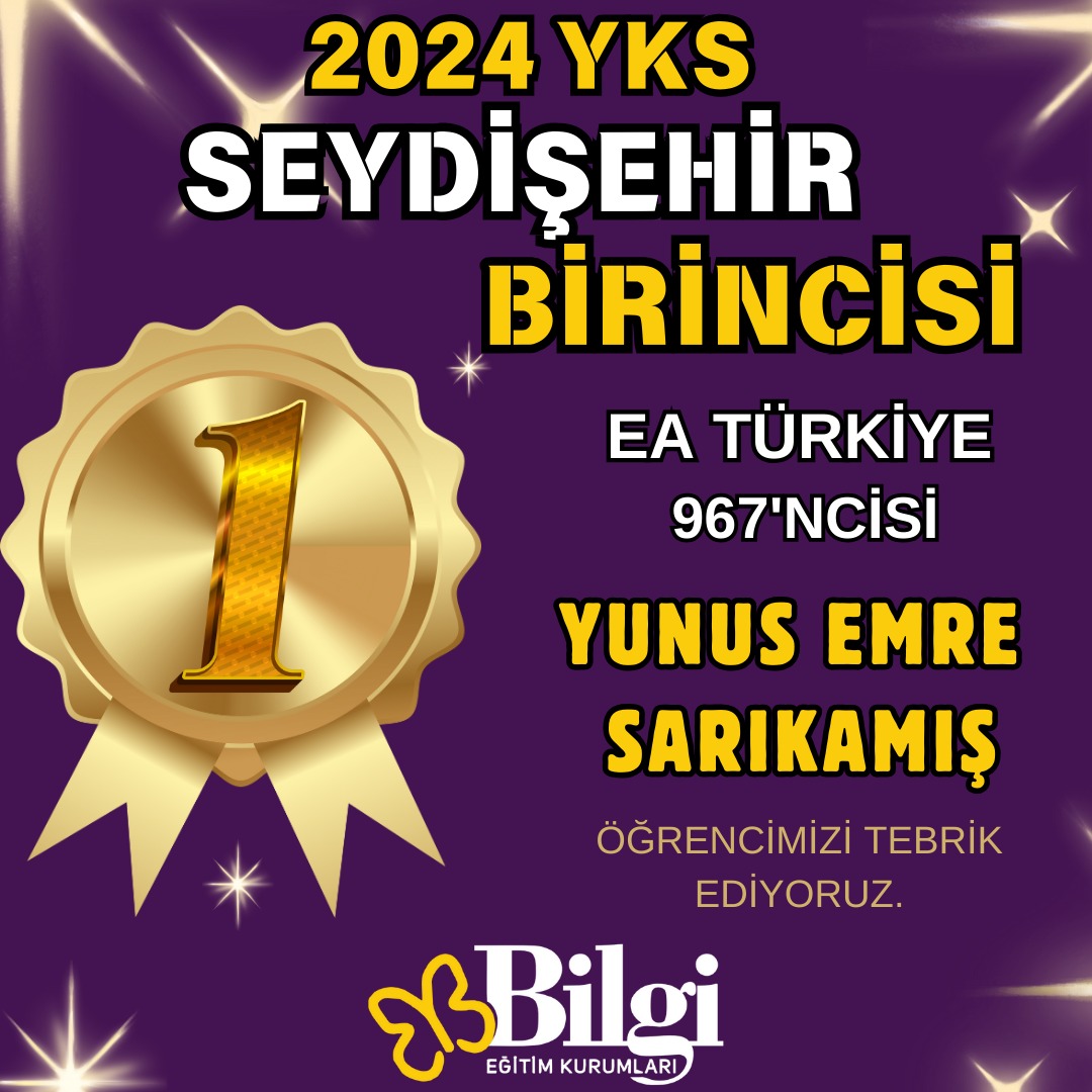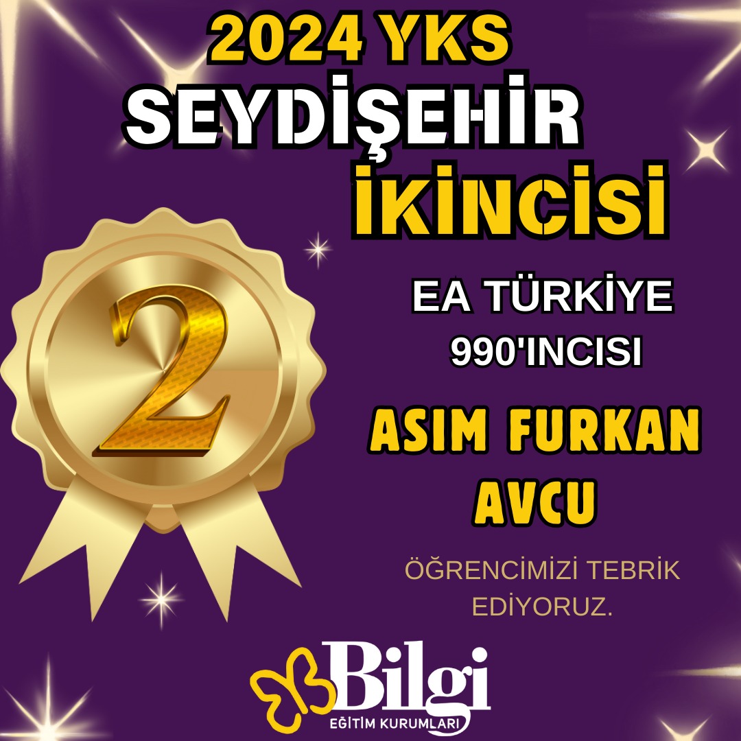 Genel kitlesel başarıda da zirveyi kimseye bırakmayan Bilgi Eğitim Kurumları LGS ve YKS'de gösterdiği performansla şehrimizde Başarı Destanı yazmaya devam ediyor. "En az bir yakınınız Bilgilidir" sloganıyla 12. yılında da Seydişehir LGS Birincisi, YKS EA Birinci ve İkincisi, YKS Dil Birincisini çıkartarak adından söz ettirmeye devam ediyor. Geçen yıl olduğu gibi bu yıl da Dört Dörtlük Başarının sahibi olarak eğitim camiasına "BİLGİ" nin imzasını atmayı başardı. Bu başarılarıyla ilçemizin gururu olan Sevgili Öğrencileri ve Değerli Ailesini tebrik eder, başarılarının devamını dileriz. Unutmayalım ki "BİLGİ" lilerin yolu her zaman açık olur!