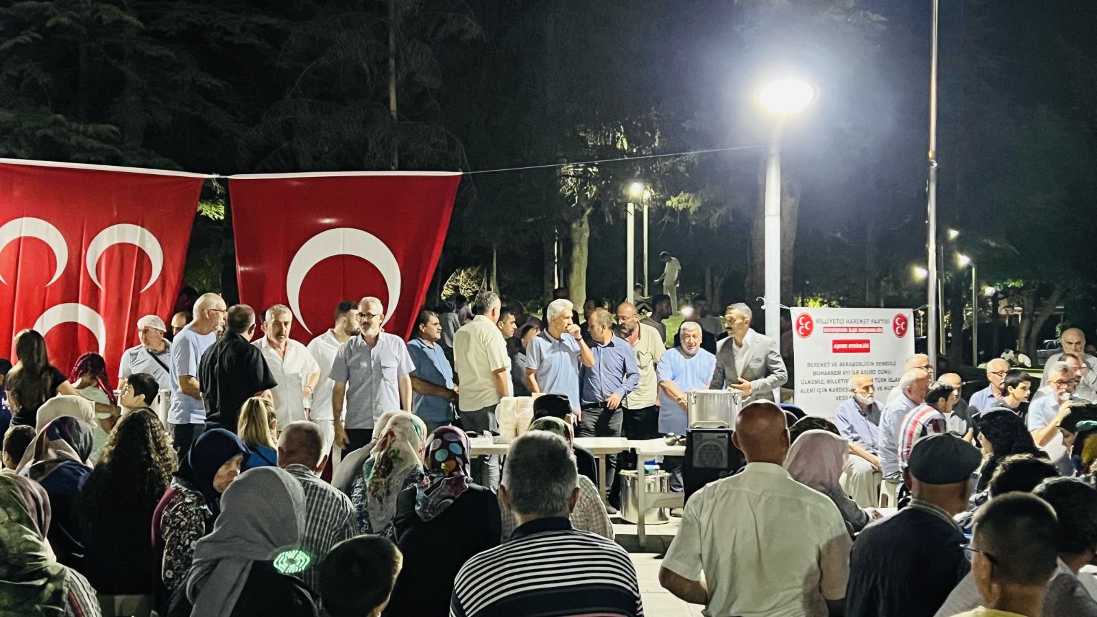 Program Kuran-ı Kerim tilaveti ve duaların okunması ile başladı. Akabinde MHP İlçe Başkanı Kadir Kocabaş, yönetim kurulu ve belediye meclis üyelerinin ikramı ile aşure dağıtımına başlandı. Geç saatlere kadar süren aşure dağıtımını tüm halk memnuniyetle ve çoşku ile karşıladı.
