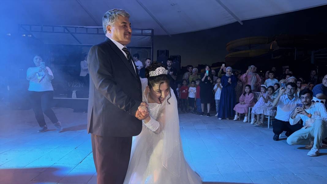 Kuaförde hazırlıkları yapıldıktan sonra düğün salonuna getirilen Ayşenur, babasının kolunda yanan konfetilerin arasında alana girdi. Yaklaşık 1000 kişinin hazır bulunduğu salonda heyecanı ve mutluluğuyla görenleri duygulandıran Ayşenur, ilk dansını da babasıyla yaptı.