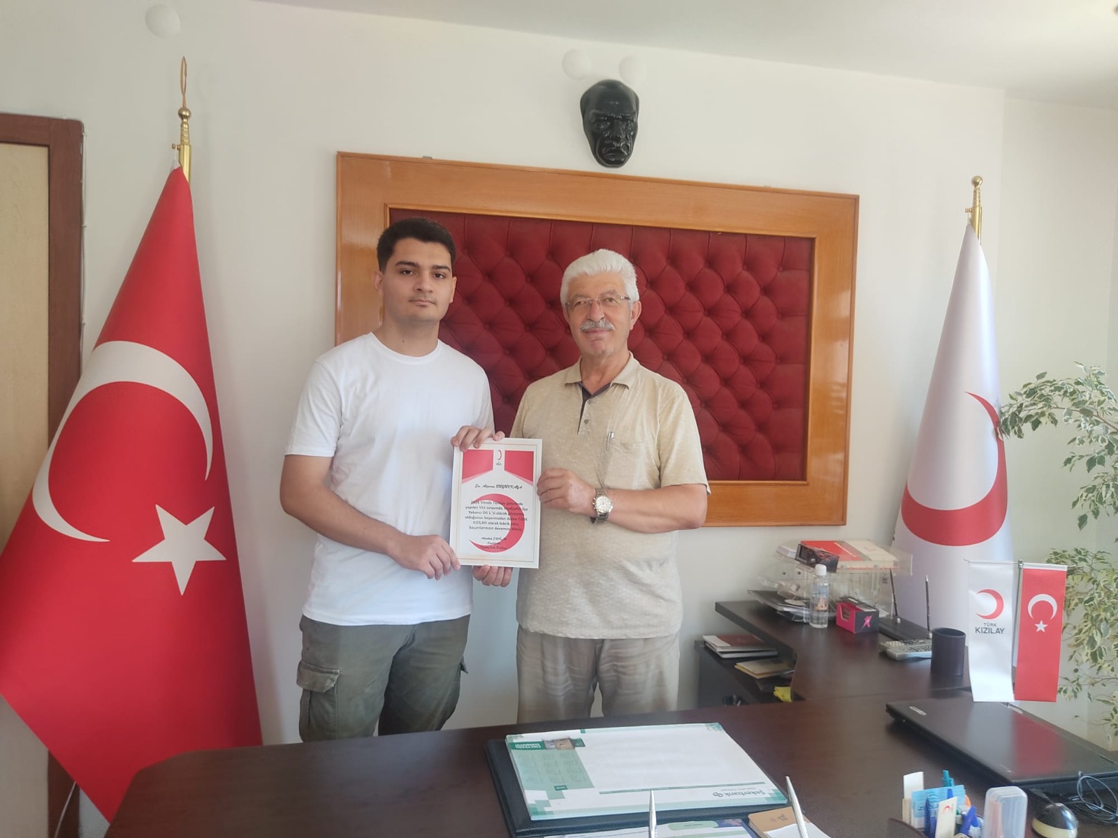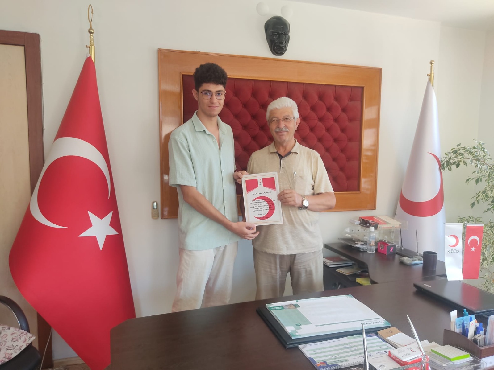 Teşekkür belgesi ile birlikte başarılı gençlere, günün anısına KIZILAY logolu bardakta hediye adildi.