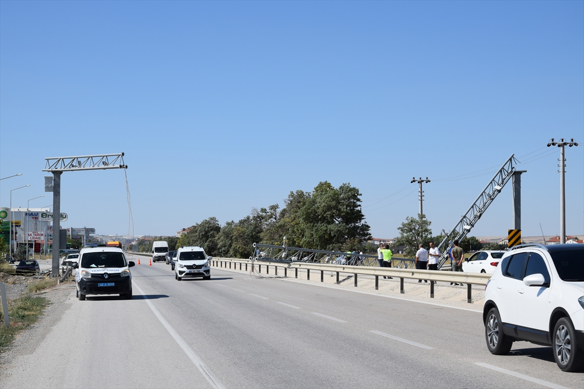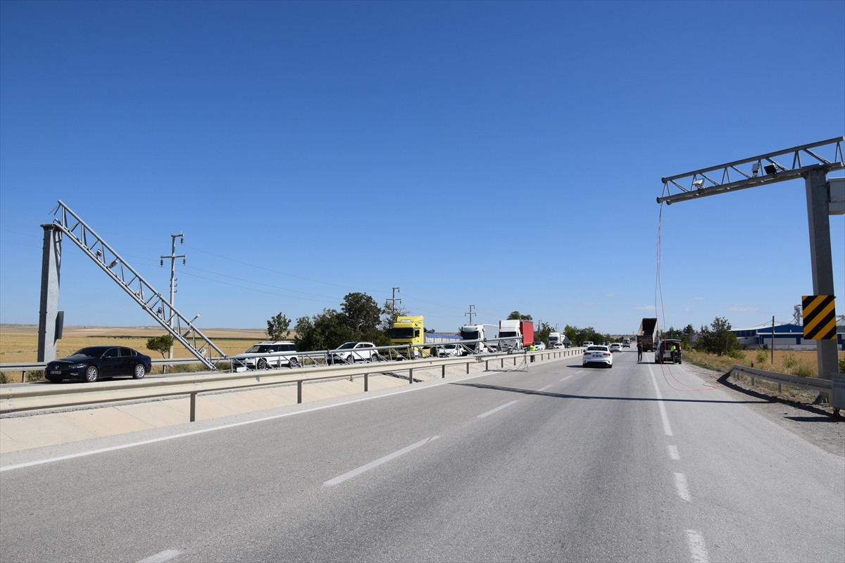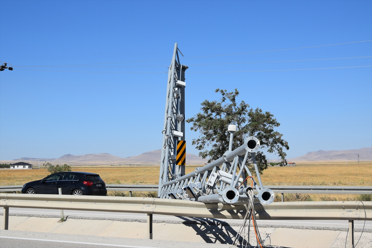 G.K. idaresindeki 06 ENN 17 plakalı tırın seyir halindeyken açık kalan dorsesi, Ankara-Konya kara yolunda Ortalama Hız İhlal Tespit Sistemi direğine çarptı.