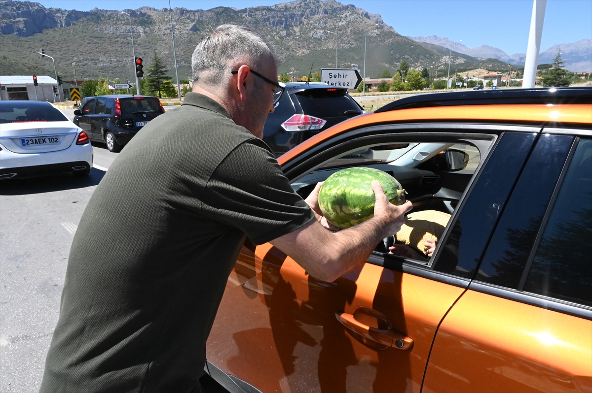 KONYA (AA) - Seydişehir'in coğrafi işaretli karpuzu, Seydişehir-Antalya kara yolunu kullanan sürücülere ikram edildi.