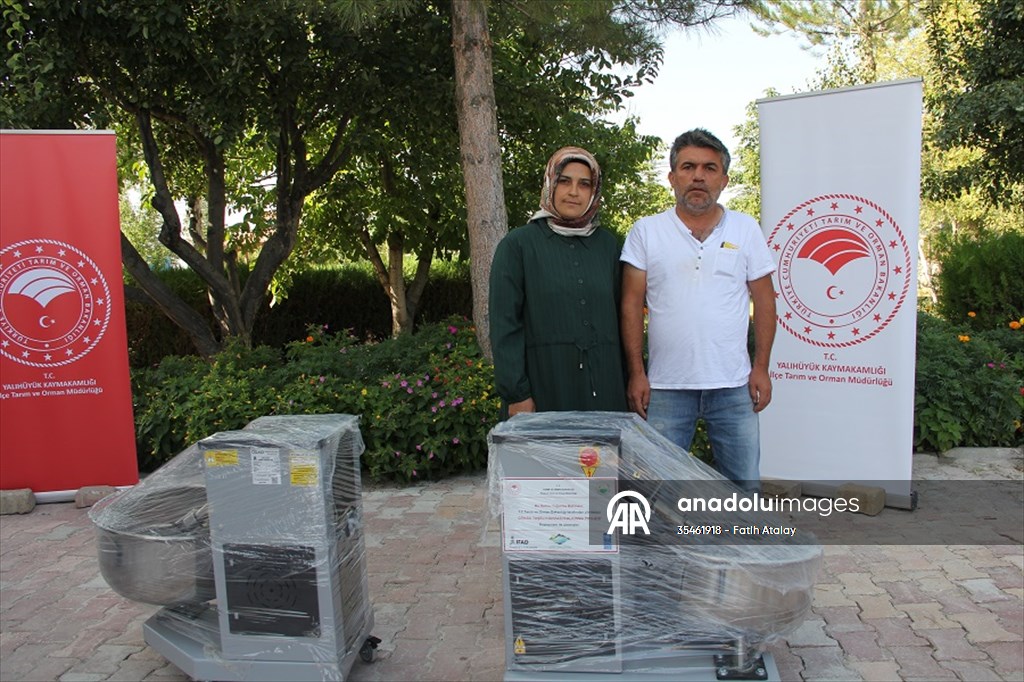 KONYA (AA) - Konya'nın Yalıhüyük ilçesinde Tarım İlçe Müdürlüğü tarafından çiftçilere budama makası ve hamur karma makinesi dağıtıldı.