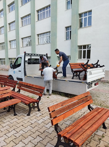 Necmettin Erbakan Üniversitesi Yerleşkesine Konya Büyükşehir Belediyesi Park ve Bahçeler Dairesi Başkanlığıtarafından 30 adet bank temin edildi