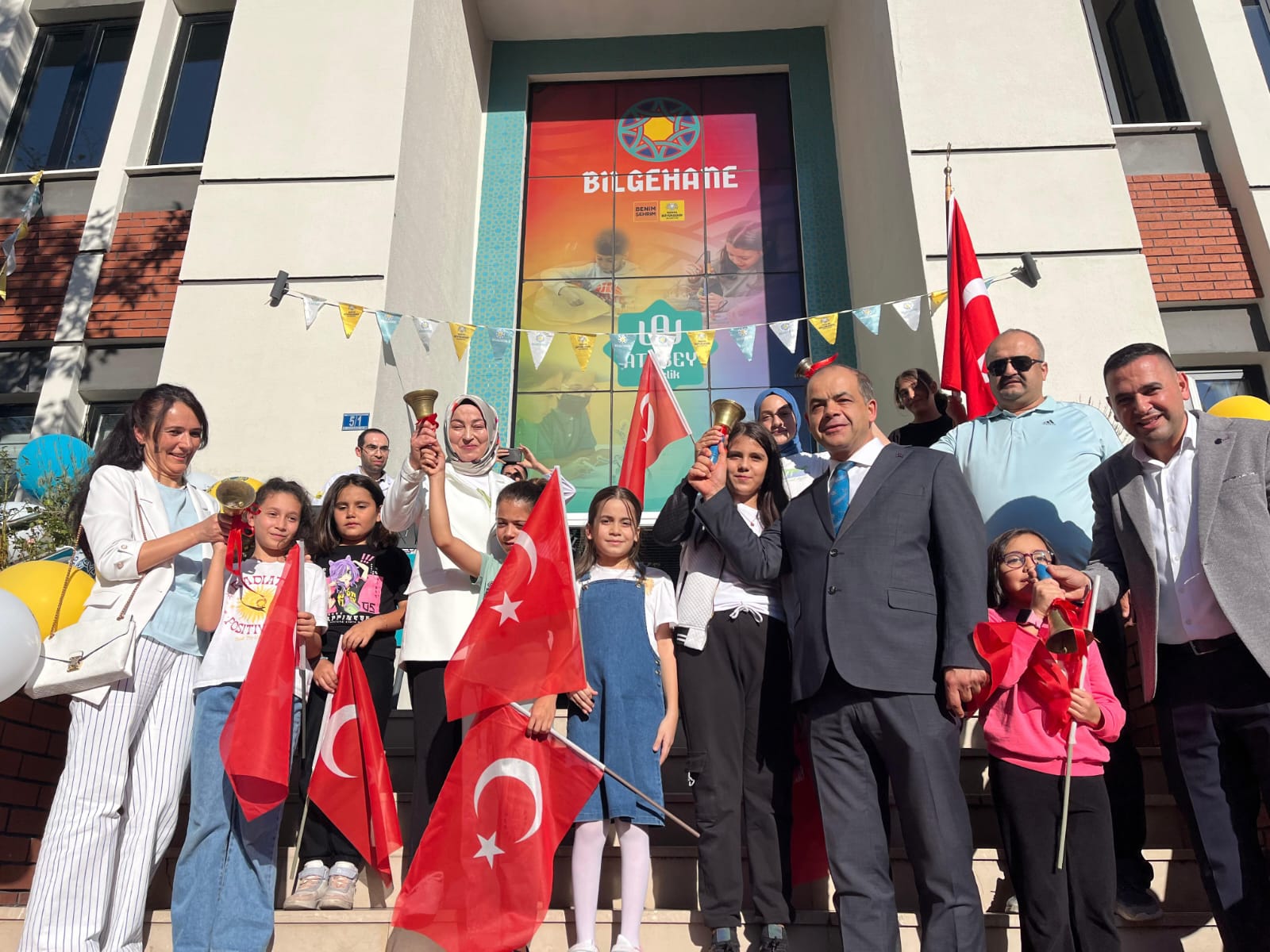 Programda yapılan dua sonrası, protokolün öğrencilerle beraber temsili nostaljik ders zilini çalmasıyla dersler başladı.