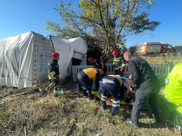 KONYA (AA) - Konya'nın Kulu ilçesinde şarampole devrilen tırın sürücüsü yaralandı.