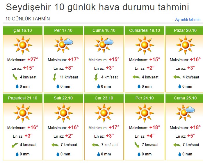 SEYDİŞEHİRDE 10 GÜNLÜK HAVA DURUMU
