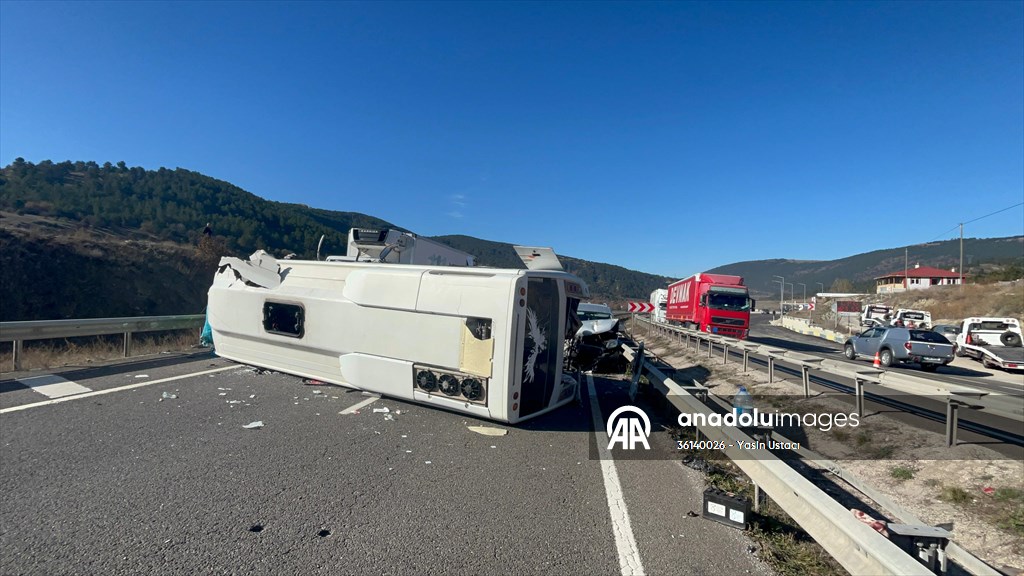 İstanbul-Samsun kara yolu Göynükçukuru köyü mevkisinde yol kenarında park halindeki tıra arkadan çarpan midibüs devrildi. Devrilen midibüse de bu sırada arkadan gelen hafif ticari araç çarptı.