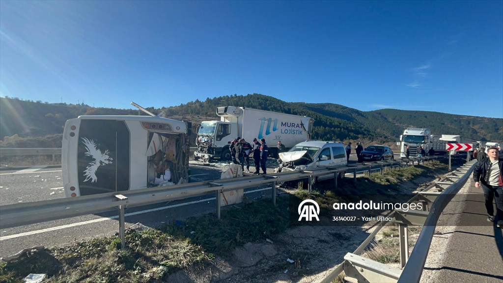 ÇANKIRI (AA) - Çankırı'da midibüs, tır ve hafif ticari aracın karıştığı kazada, ilk belirlemelere göre 13 kişi yaralandı.