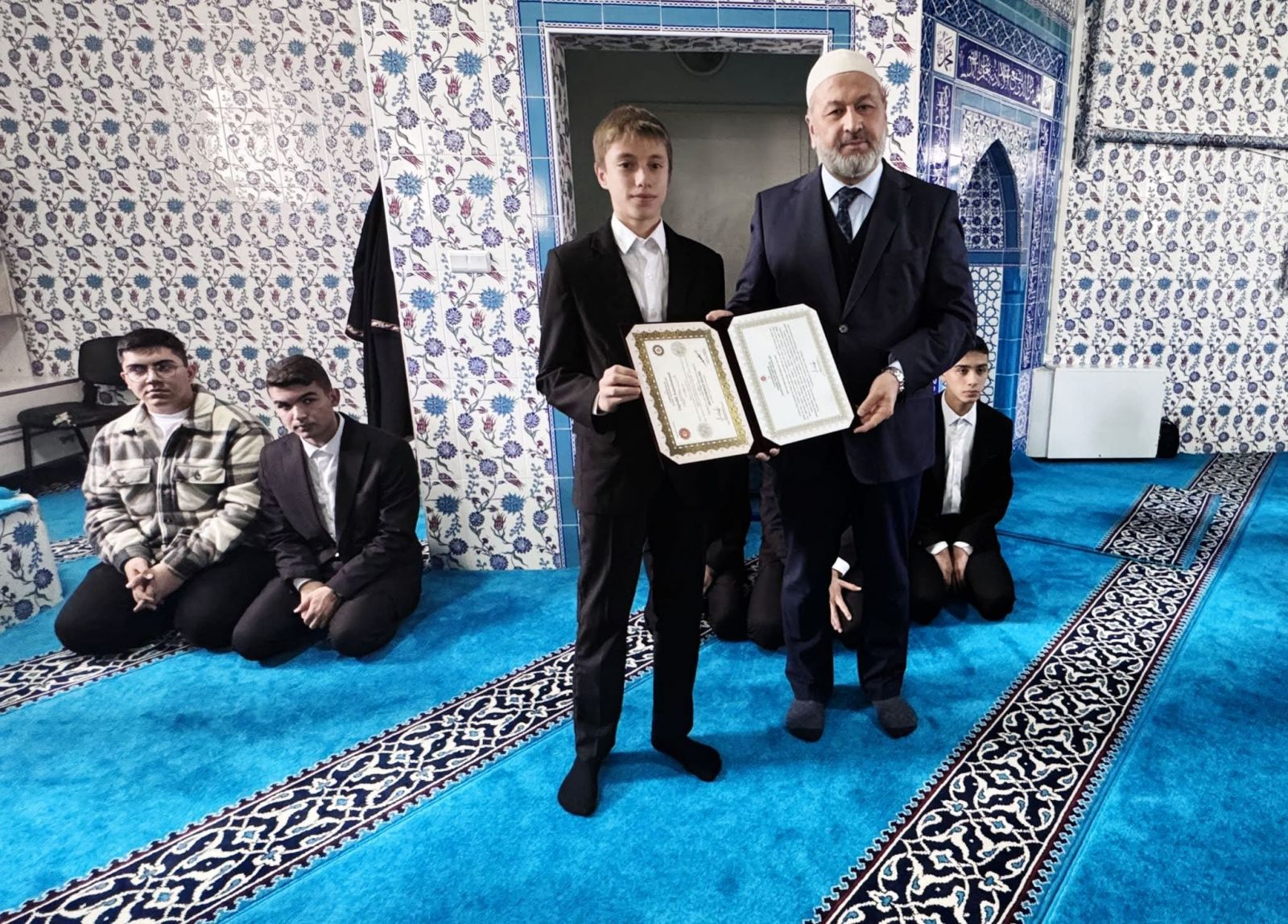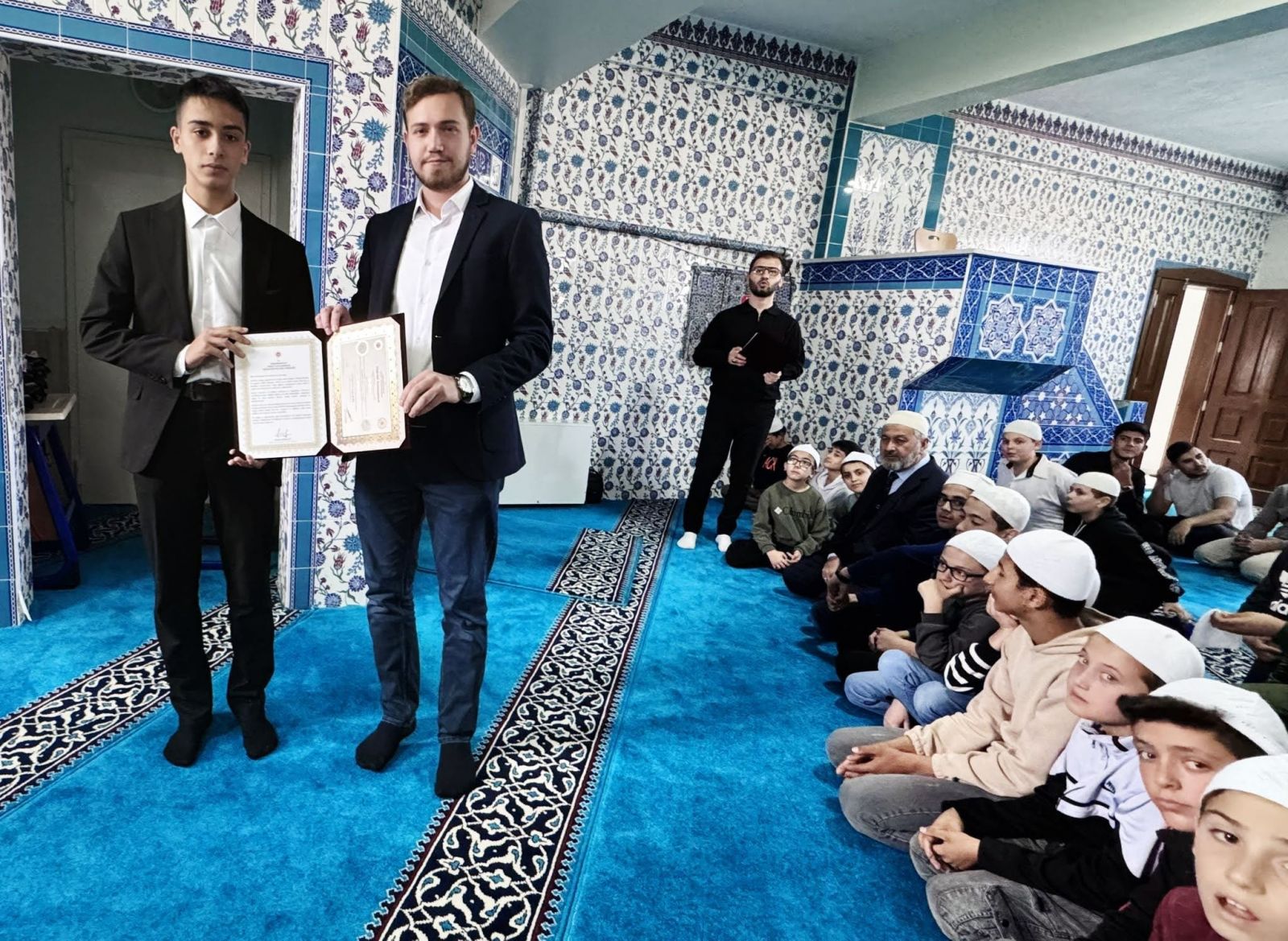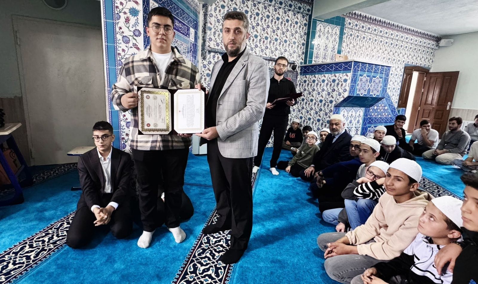 Cuma namazını, hafız öğrencilerimizden birinin kıldırmasının ardından düzenlenen belgelerin takdim töreninde, hafızlığın önemine dair kısa bir değerlendirme yapıldı. Müftü Adem Bebek, hafızlarımızı ve ailelerini tebrik ederek, bu önemli başarıda emeği geçen öğreticilerimize de teşekkürlerini iletti. Hafızlık, yalnızca bir eğitim süreci değil, aynı zamanda gençlerimizin manevi gelişimlerine katkı sağlayan, topluma önemli değerler kazandıran bir müessese olarak öne çıkmaktadır.