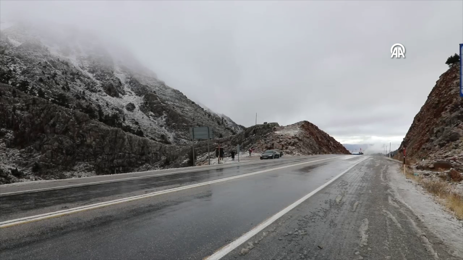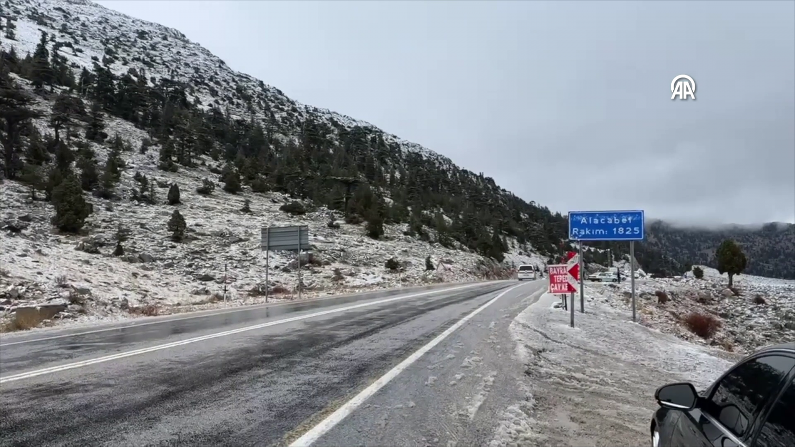ANTALYA (AA) - Antalya'yı Konya'ya bağlayan 1825 metre rakımlı Alacabel mevkisine mevsimin ilk karı yağdı.