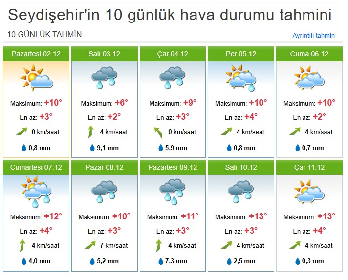 İşte Seydişehirde10 günlük hava durumu tahmini.