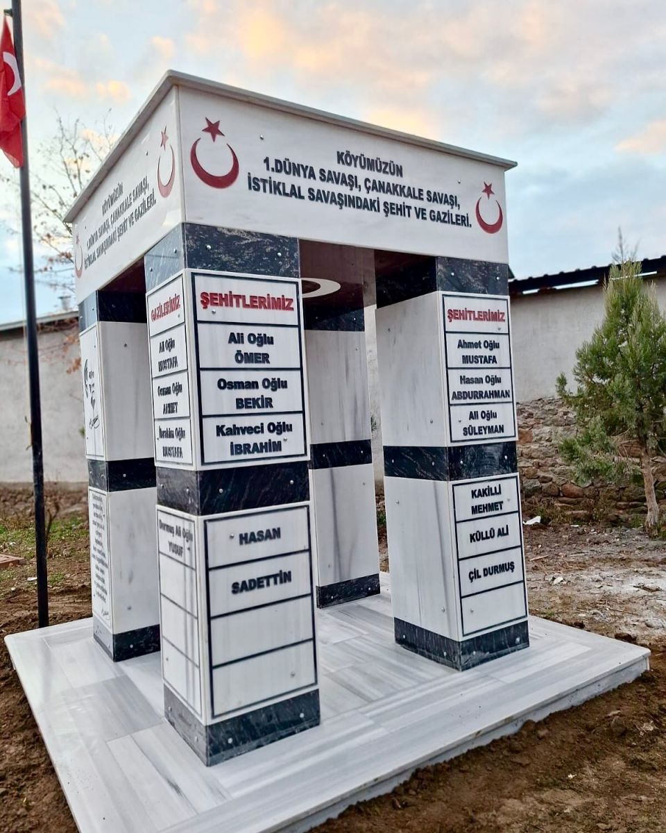 " Büyüklerimizden duyduğumuza Vatan kurtarmak için 1. Dünya Savaşı İstiklal Savaşı ve Çanakkale Savaşı döneminde köyümüzdeki erkeklerin tamamı cepheye koşmuş.Benim köyümüzün tarihinden tespit edebildiğim kadarı Savaşa giden büyüklerimizden 11 tanesi vatan için şehit olmuş, 4 tanesi gazi. Bu bilgileri kesinleştirdikten sonra köy e anıt yaptırmaya karar verdim.