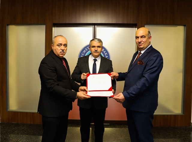 TSE Konya İl Müdürü Mehmet YILDIRIM tarafından rektör yardımcımız Prof. Dr. Hidayet OĞUZ’un makamında Seydişehir Meslek Yüksekokulu Müdürü Doç. Dr. Fatih AYDIN’a Okulu adına belgeleri takdim edildi.