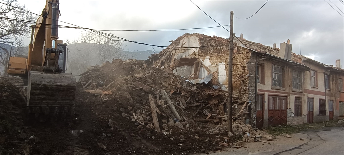 Ekipler, ilçe merkezi ve kırsal mahallerde bulunan emniyet ve sağlık açısından risk oluşturan metruk binaların yıkımına devam ediyor.