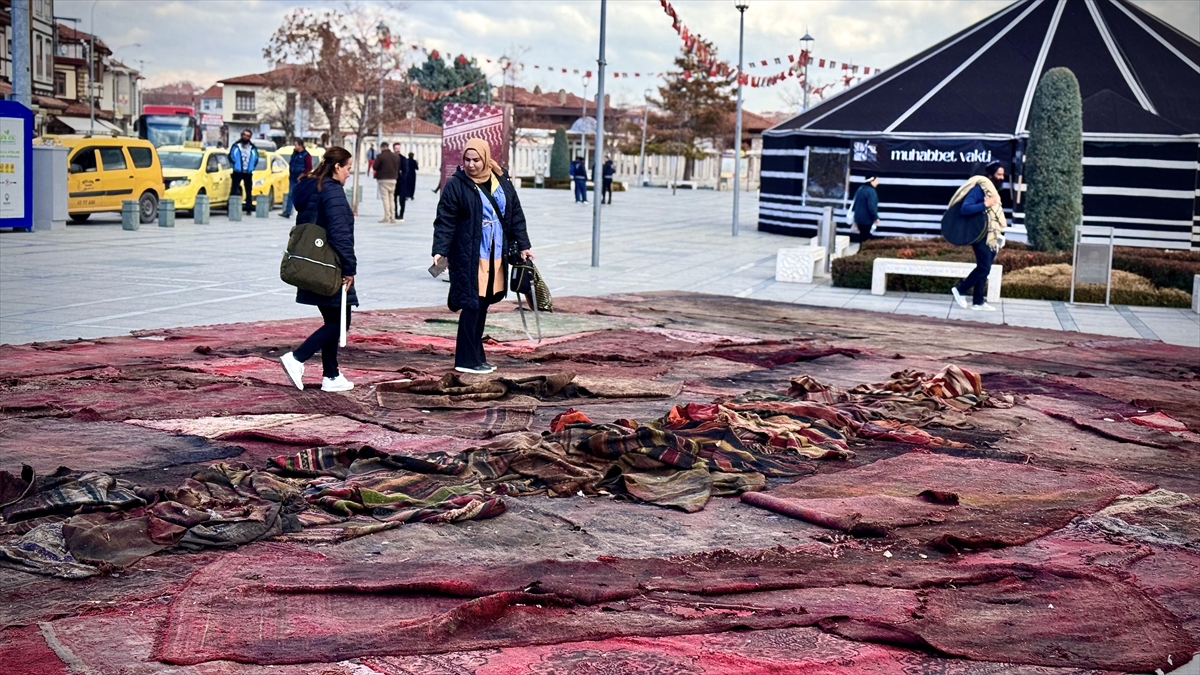 Kültür Medeniyet Vakfının "Dokunaklı" adlı, Anadolu'dan ve Balkanlar'dan getirilen özel dokuma 105 eski halı Mevlana Meydanı'nda hafta boyunca sergilenecek.