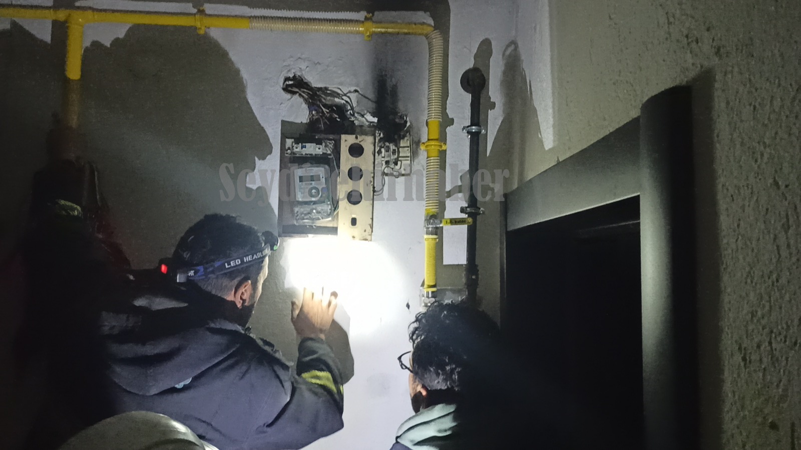 Ekipler tarafından kaçak elektrik tesisatı bulunan dairenin saati sökülerek mühürlendikten sonra apartmana yeniden elektrik verildi.