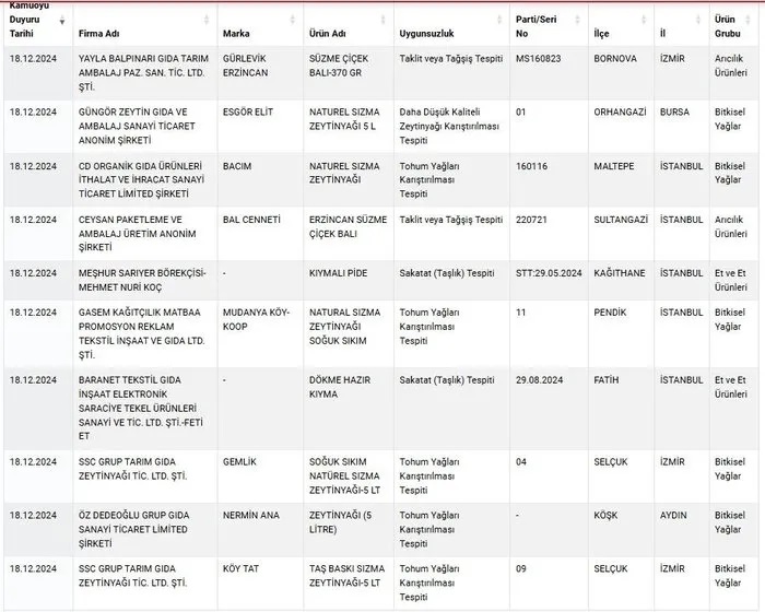 İŞTE TAKLİT VEYA TAĞŞİŞ YAPILAN GIDALAR - 18 ARALIK 2024
