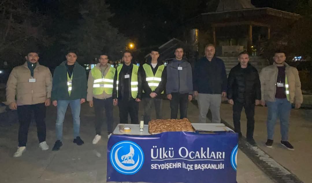 Üç ayın başlangıcı ve Regaip kandili vesilesiyle Seydişehir Ülkü Ocakları ilçe başkanlığı olarak üniversite birimimiz tarafından halkımıza muallimhane Camisi önünde kandil simidi ikram ettik. Bu olay ile tekraren Türk-İslam aleminin Mübarek Regaib Gecesi'ni gönülden kutlamak Türk Milletine başta Doğu Türkistan olmak üzere esenlikler eğitimi.
