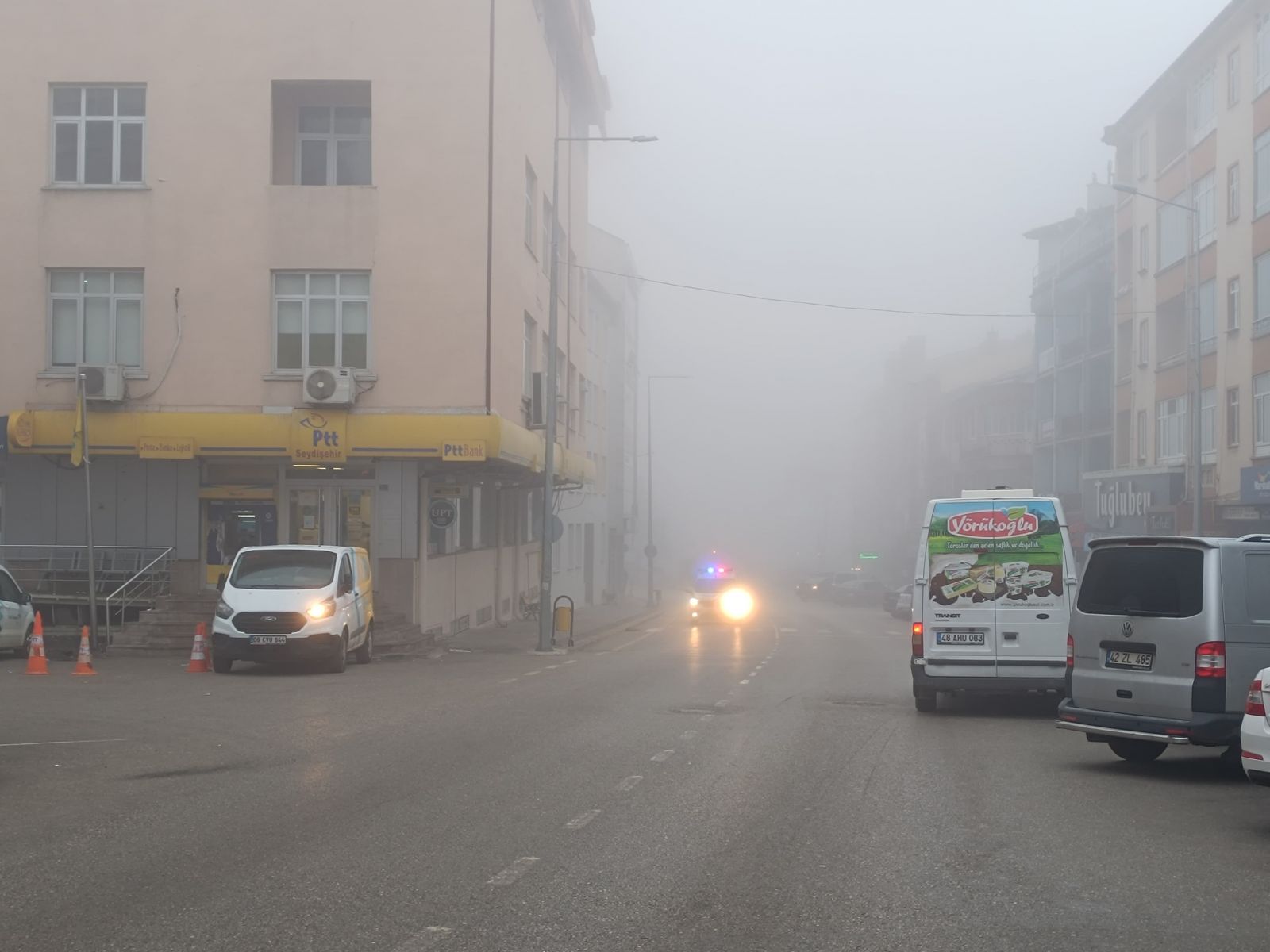 Seydişehir ilçe merkezinde etkili olan sis, günlük hayatı olumsuz etkiledi. Düşük görüş mesafesi nedeniyle araçlar yavaşladı, trafikte uzun kuyruklar oluştu. Yetkililer, sürücüleri dikkatli olmaya ve takip mesafesini koruyarak araçlarını kullanmaya davet etti.