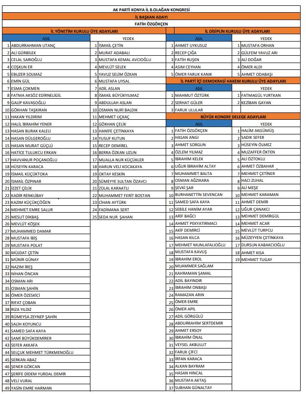 İşte yeni dönem AK Parti Konya İl Yönetim Kurulu listesi;
