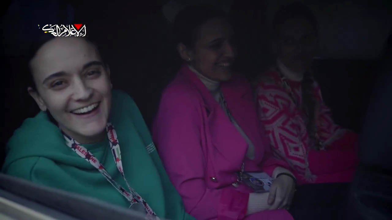 Görüntülerde rehinelerin gayet sağlıklı ve neşeli oldukları gözlenirken Hamas üyesi savaşçılar, kadın askerlere arabaya bindirildikleri esnada birer adet hediye takdim ediyor.