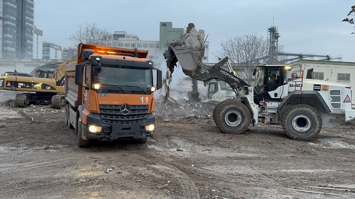 Ardından binanın enkazı, Konya Büyükşehir Belediyesi ekiplerince yaklaşık 4 saat süren çalışmanın ardından kaldırıldı.