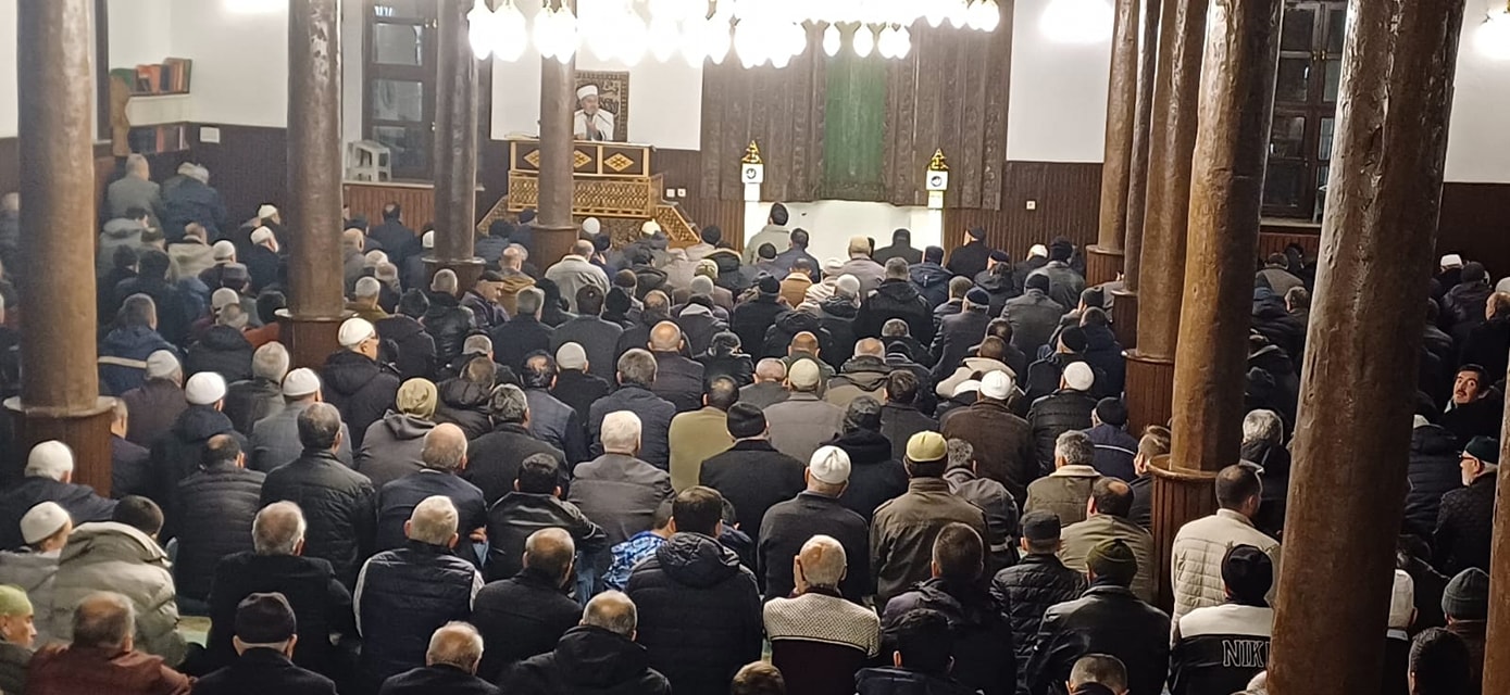 Yatsı namazını müteakip din görevlileri ve tarafından okunan Kur'an-ı Kerim, Mevlid-i Şerif, salavât, tekbir ve ilahilerin yükseldiği tarihi Seyyid Harun Veli Camii’nde, cemaat cami dışına taştı. Cami avlusuna serilen hasırlar üzerinde soğuğa aldırış etmeden namazlarını eda etti. Namaz çıkışında vatandaşlara ikramlar yapıldı.