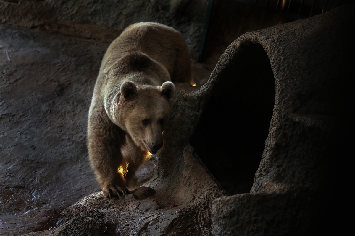 Yaz aylarını havuzlu bahçede geçiren ayılar, kış döneminde kapalı mekanda mağaraya benzetilen alanda kalıyor.