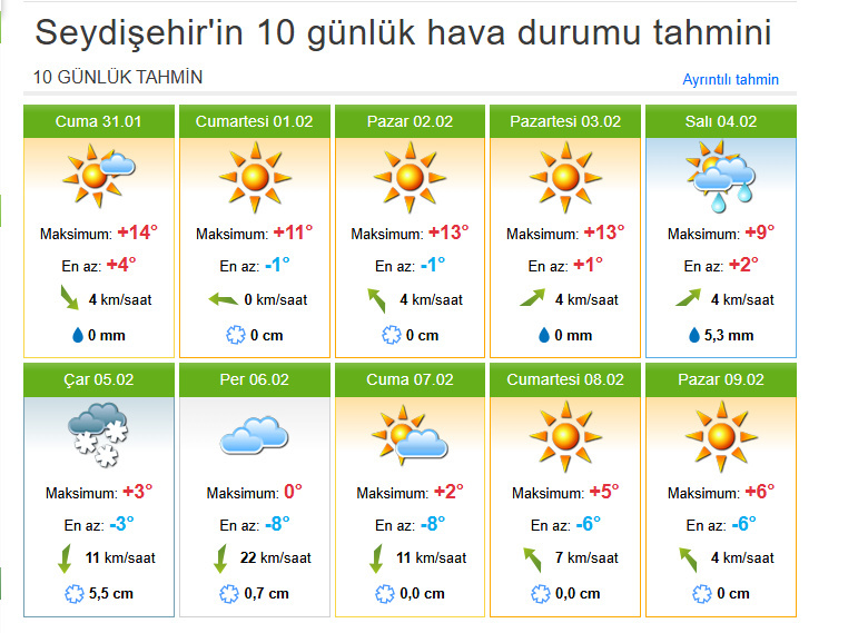 Meteorolojinin son hava tahmin raporuna göre hava sıcaklığının en yüksek 12 derece olması beklenen Seydişehire haftasonu yağış beklenmiyor.