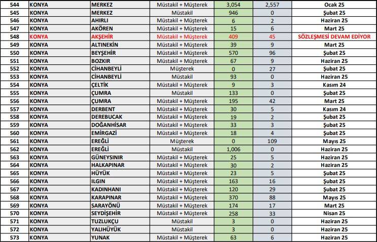 KONYA VE İLÇELERİNİN TAHSİS TARİHLERİ BELLİ OLDU