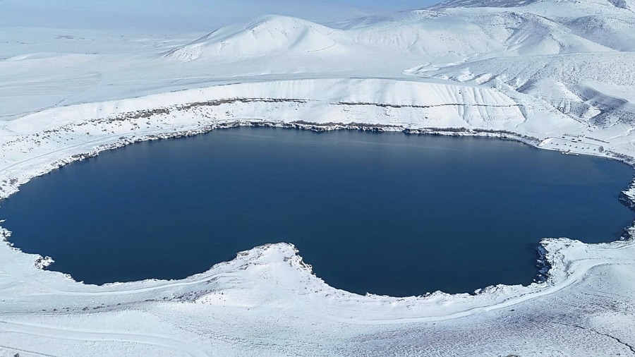 "Kesin korunacak hassas alan" ilan edilen gölde, bir süredir etkili olan kar, güzel görüntüler ortaya çıkardı.