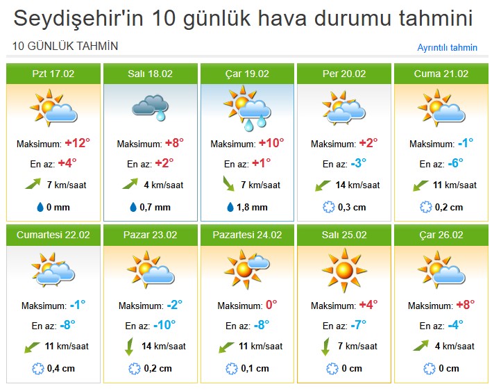 SEYDİŞEHİRDE 1 GÜNLÜK HAVA DURUMU