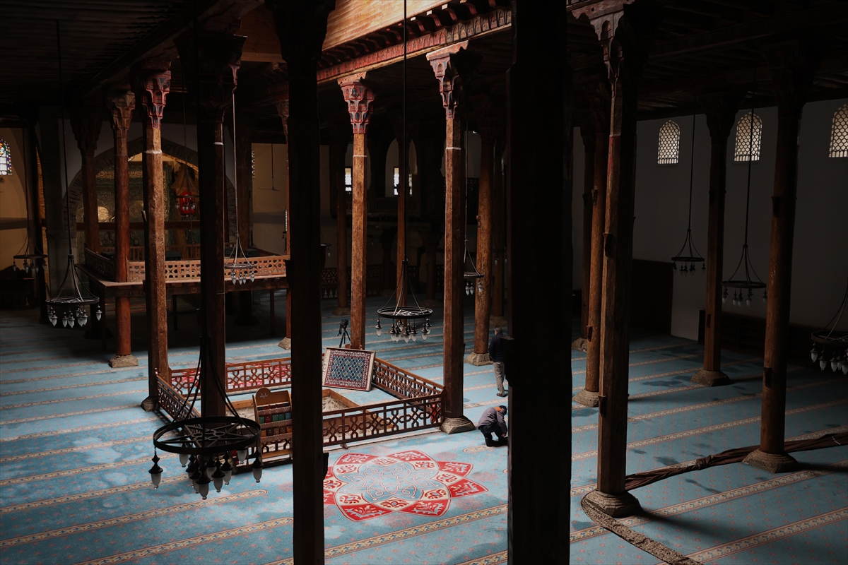 KONYA (AA) - SERHAT ÇETİNKAYA - Konya'daki UNESCO Dünya Mirası Listesi'nde yer alan Eşrefoğlu Camisi, bey mahfilinin (camide mihrabın veya kıble duvarının ortasına yakın yerde konumlandırılan, genellikle hükümdar ve maiyeti için ayrılmış alan) altında, zeminden 2 metre aşağıda, iç içe iki odadan oluşan çilehanesi ve dehlizleriyle ilgi uyandırıyor.