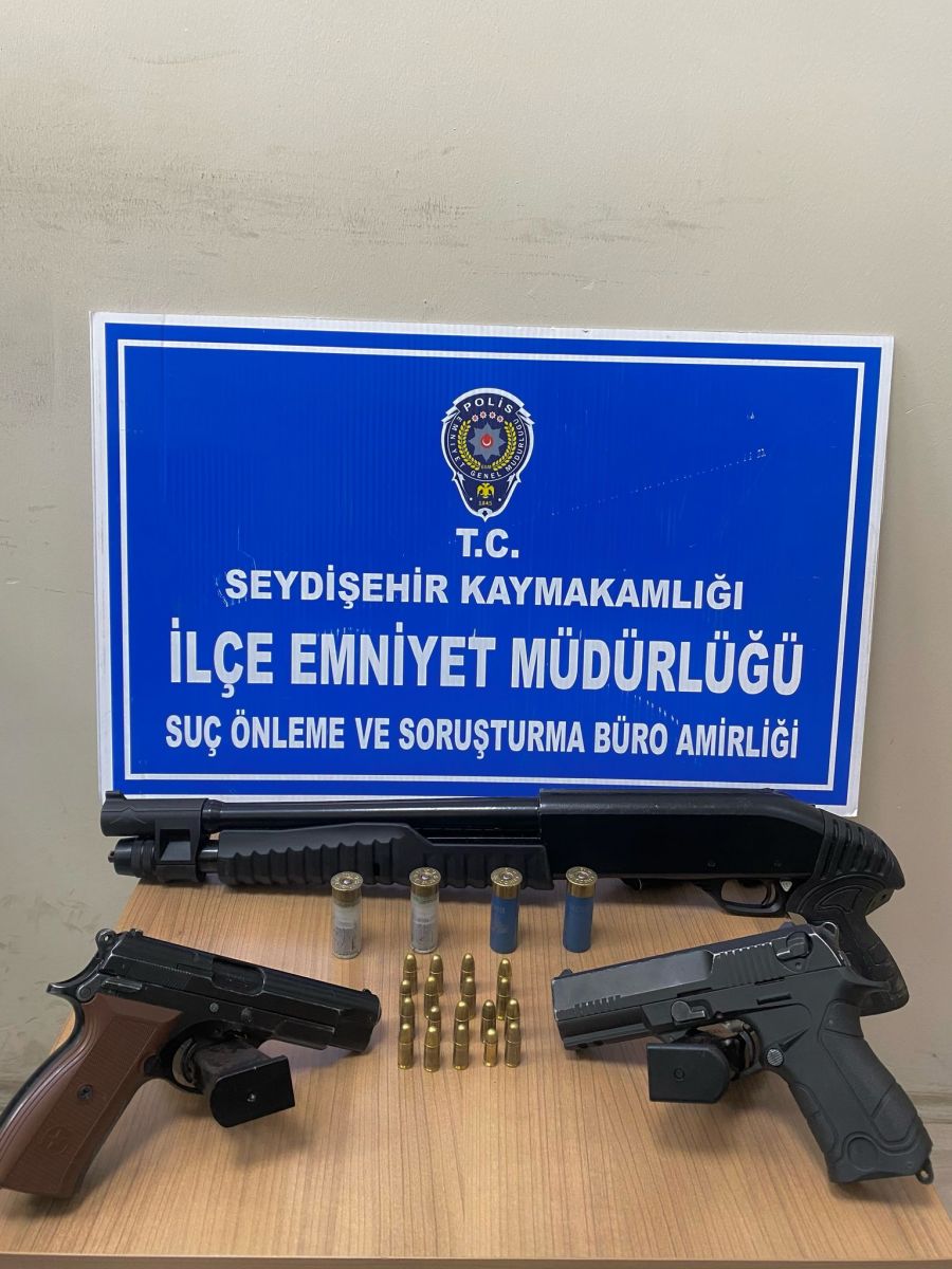 Seydişehir İlçe Emniyet Müdürlüğü Suç Önleme ve Soruşturma Büro Amirliği ekipleri, ruhsatsız silah bulundurdukları tespit edilen iki şüphelin ikametine operasyon gerçekleştirdi. Aramada 2 adet ruhsatsız tabanca, 1 adet yivsiz av tüfeği ve 22 adet fişek ele geçirildi. Şüpheliler hakkında adli işlem başlatıldı.
