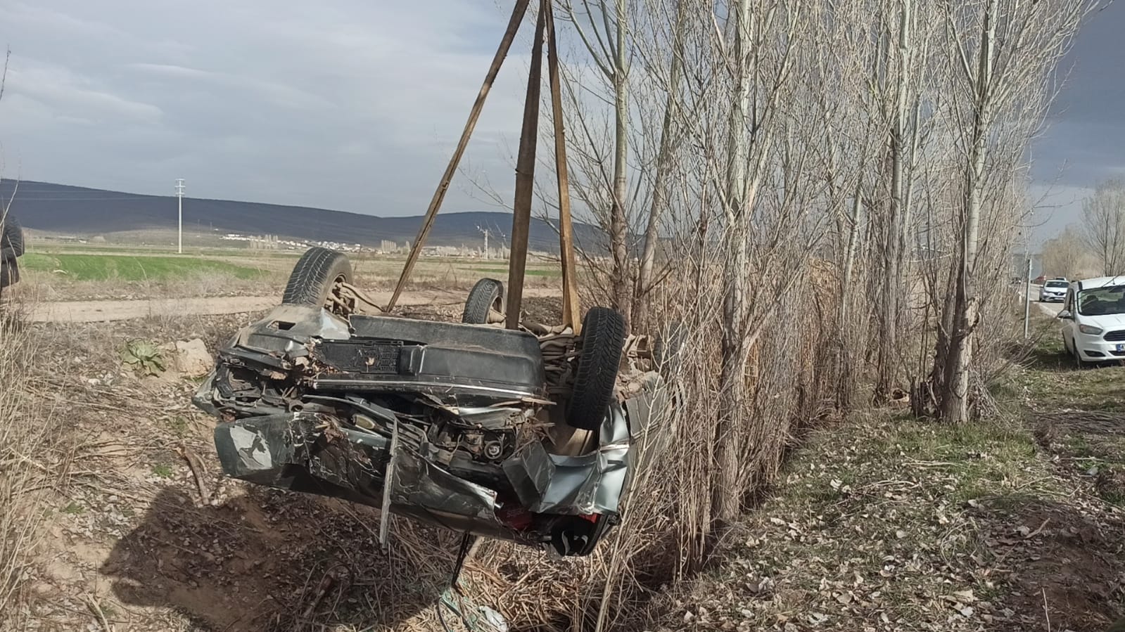 Konya’nın Seydişehir ilçesinde meydana gelen trafik kazasında bir kişi yaralanırken ters dönen araçta ki sürücü yolan geçmekte olan vinç yardımı ile sıkıştığı yerden kurtarıldı.