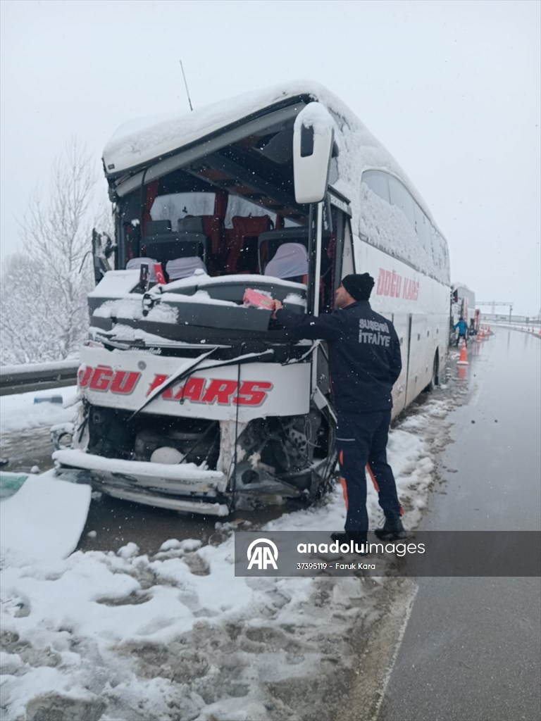 D-100 kara yolunda S.D. yönetimindeki 60 BD 910 plakalı otobüs ile İ.K. idaresindeki 44 PU 999 plakalı otobüs Suşehri ilçesi mevkisinde çarpıştı.