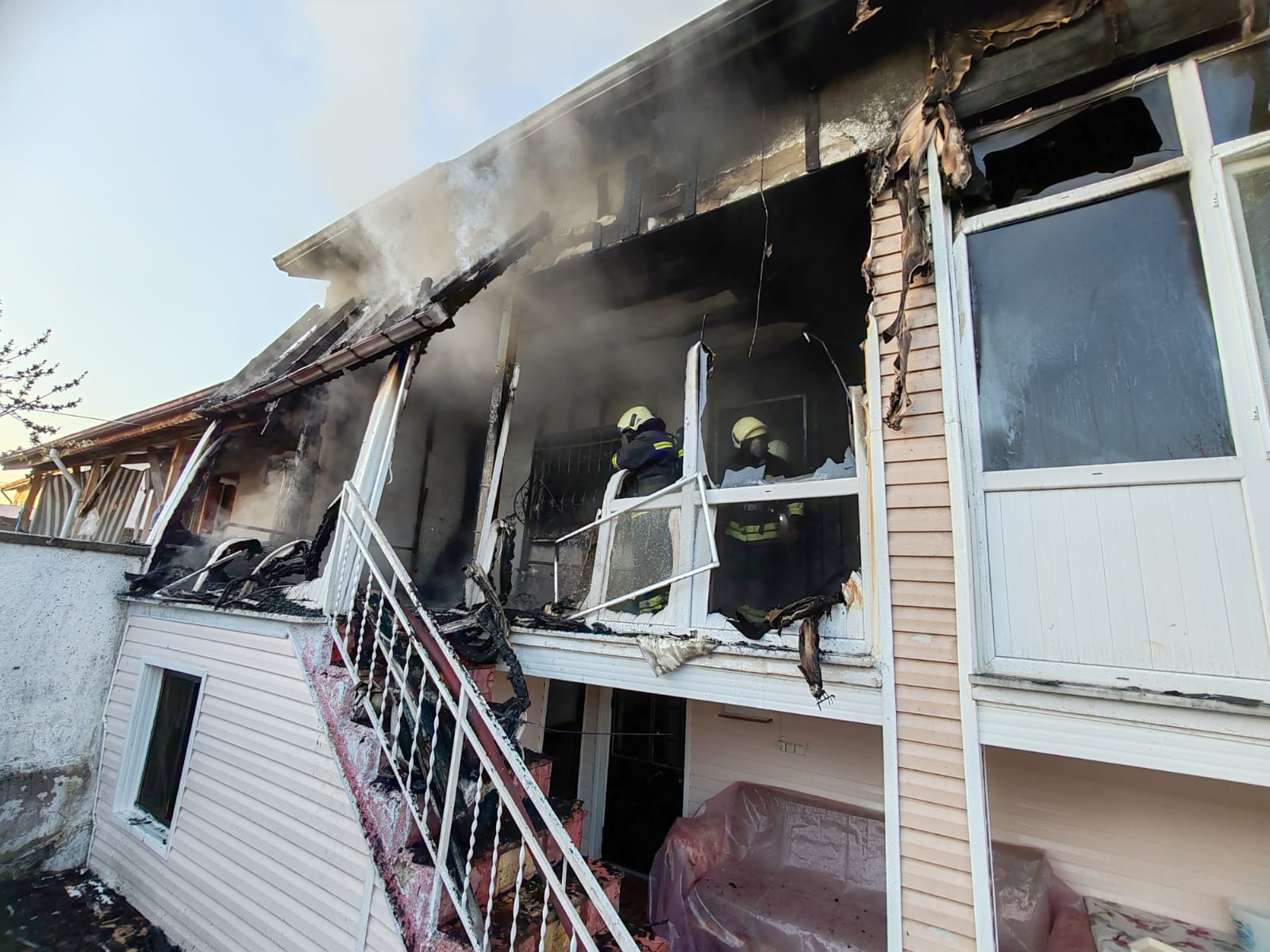 Şüpheli, eski eşi M.K. ile yardıma gelen komşuları M.K. ve eşi H.K'yi darbetti, evi ateşe verdi.