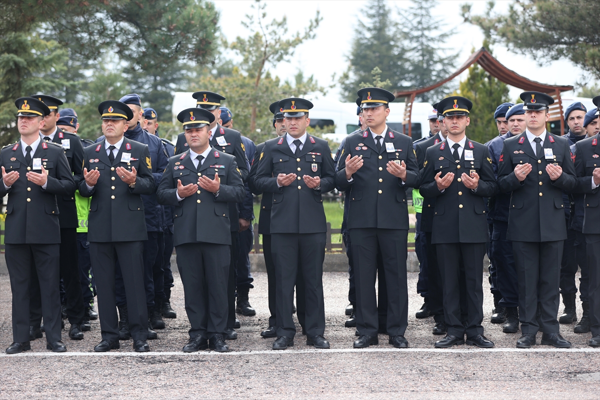 Şehidin Türk bayrağına sarılı tabutu, silah arkadaşları tarafından İl Jandarma Komutanlığındaki tören alanına getirildi.
