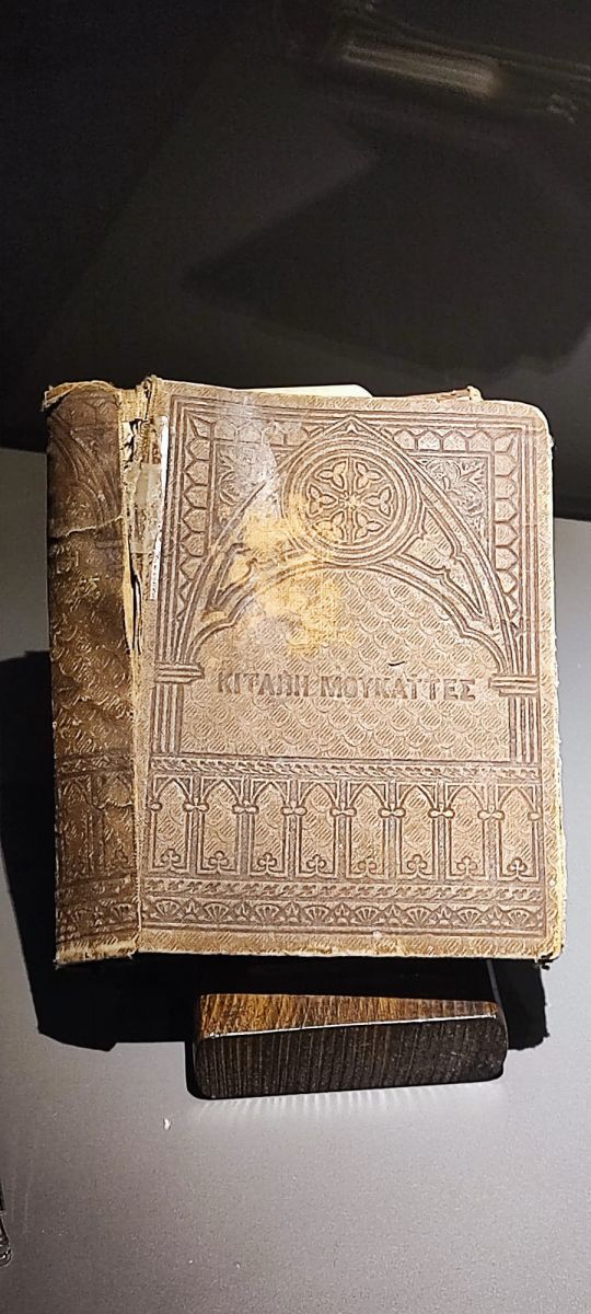 Bugün Sille Müzesi'nde sergilenen Sille'li ortodoks Türk'lere ait Grek (Yunan) harfleri ile yazılmış Türkçe İncil kapagi. Üzerinde Grek harfleri ile "Kitabı Mukaddes"yazıyor.